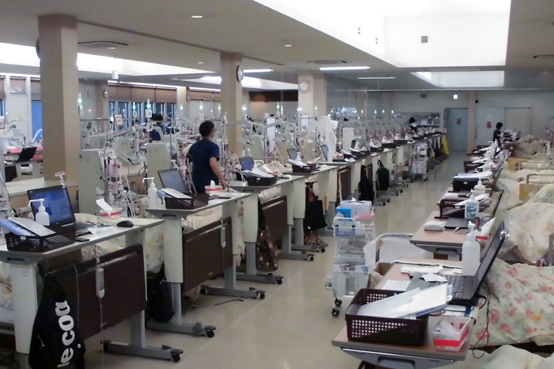 当院は透析治療を専門に行う静岡県東部地域有数の大きさの医療施設です。透析治療を受ける患者様へと手厚い医療の提供が行われるよう心がけています。